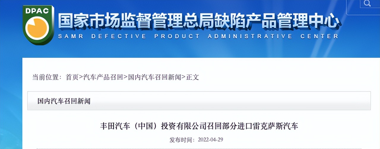 2022年5月11日起,丰田汽车(中国)投资有限公司召回以下车辆: