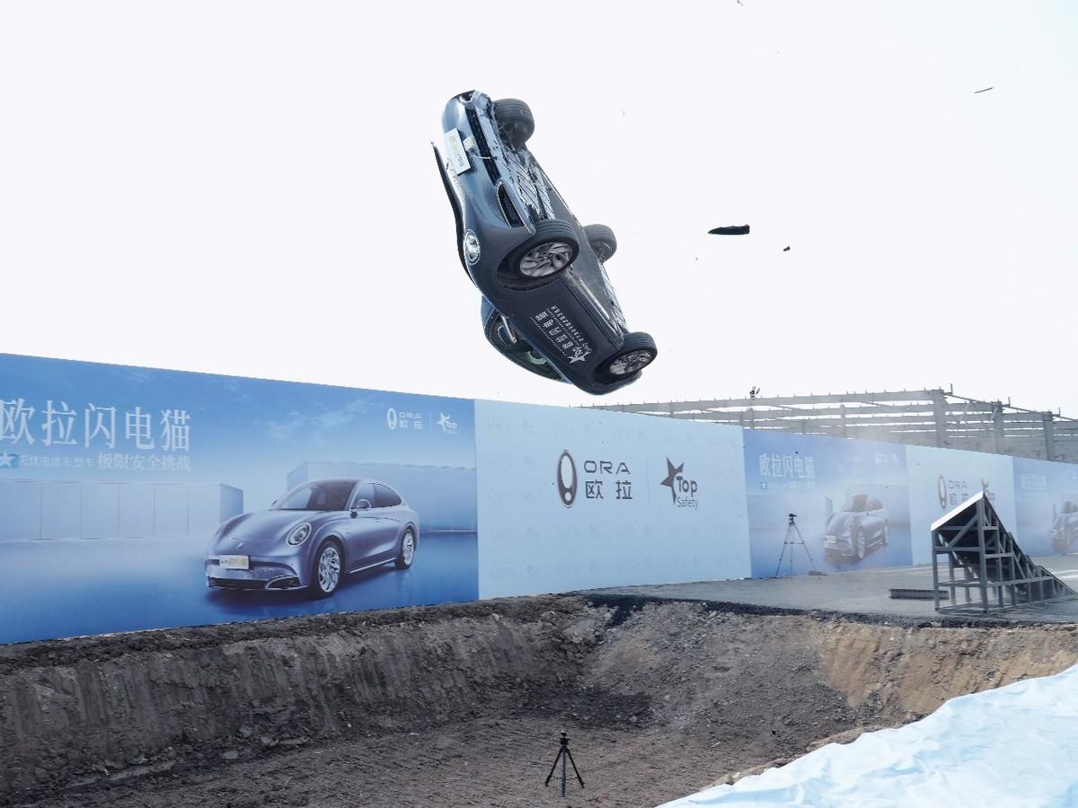 新能源汽车安全天花板,欧拉闪电猫高速螺旋翻滚跌落挑战成功