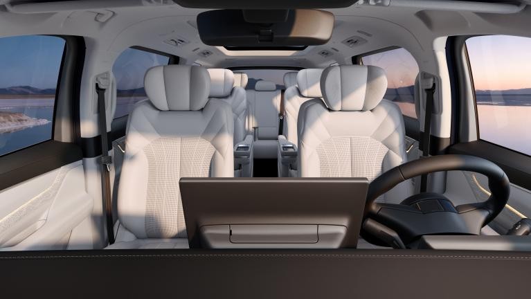 舒适配置方面,V900堪称移动的奢享空间。6座与8座版三排座椅支持180°一键躺平,7座版三排靠背最大可调至137°,11层结构的云感SPA座椅搭配慢回弹记忆海绵,实现肩背腰臀全域贴合。全车座椅标配通风、加热功能,主副驾与二排还配备8点SPA级按摩,搭配0压腿托与睡眠头枕,让长途出行不再疲惫。17.3英寸防夹吸顶屏可连接Switch,9.1L冷暖冰箱能容纳12听可乐,支持-6℃至50℃宽温域调节,27扬声器的FlymeSound音响系统打造沉浸式声场,每个座位都是黄金聆听位。