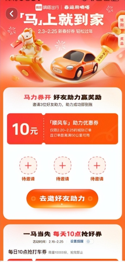 如果能入围所在城区春节里程榜前十,还能赢取开工加油包,为节后出行节省成本。