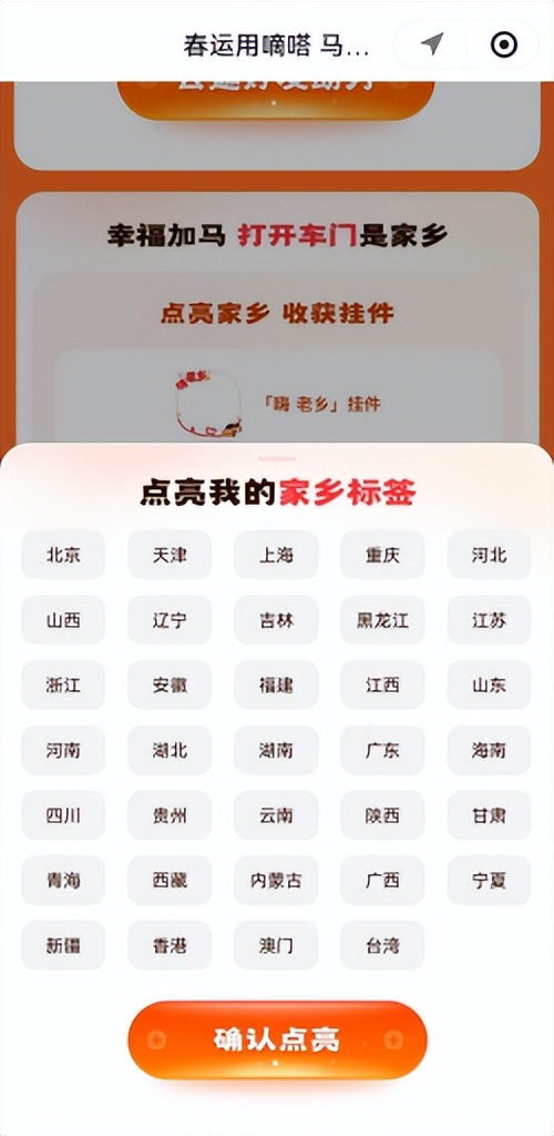 为此,平台推出“打开车门是家乡”活动,乘客只要点亮“家乡”标签,就能获得“嗨!老乡”专属头像挂件。