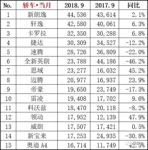 销量榜中,国产车依旧仅一款吉利帝豪在列,帝豪9月份销量为19650辆,排名9。