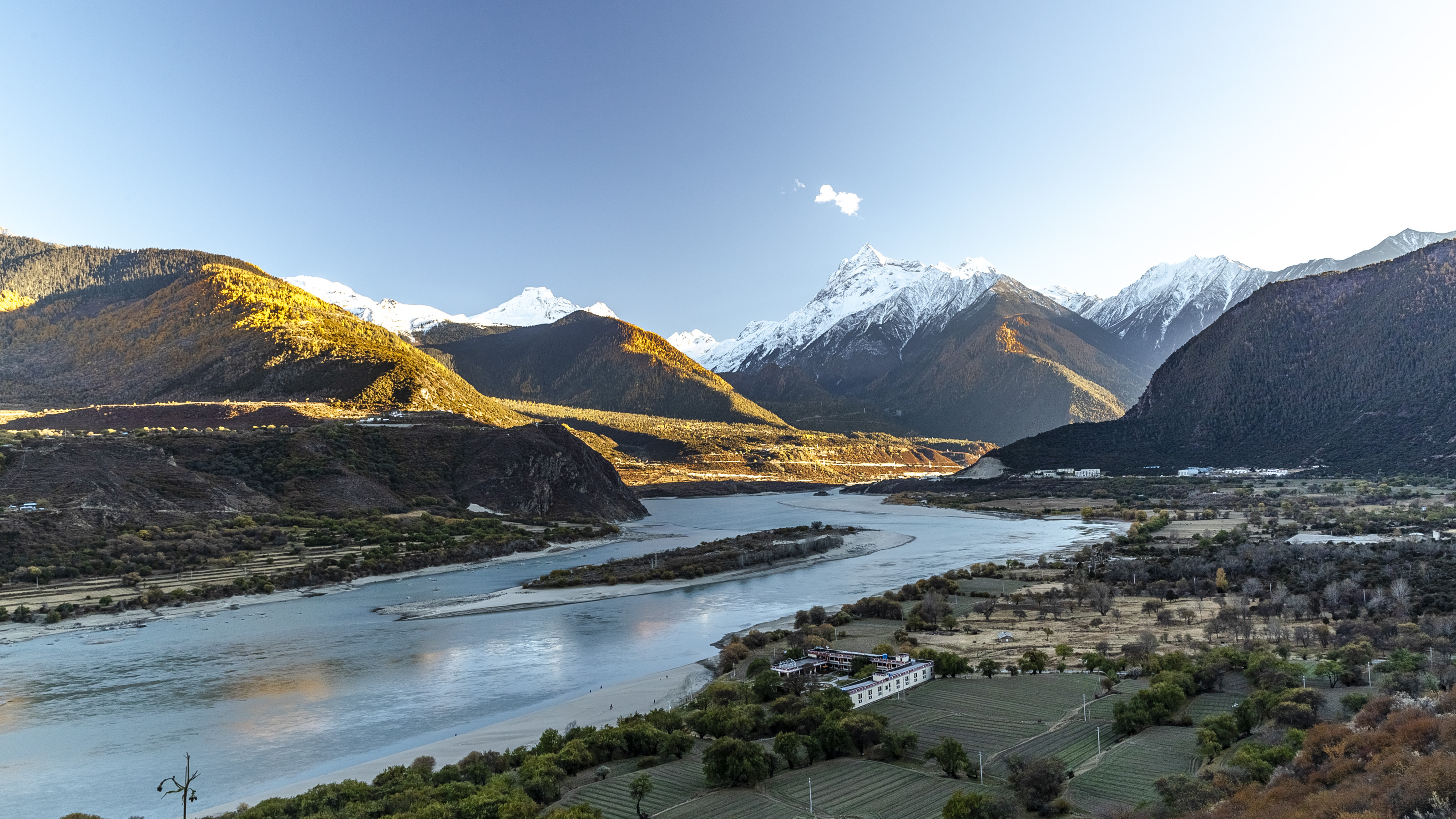 从机场的云雾中绕转而下,一道木质闸门就开启了一个全新的世界。山泽居?不由得让人想起陶渊明的“目倦山川异,心念山泽居”。背靠连绵雪山,毗邻雅鲁藏布江,峡谷风光、日落金山、层林尽染,一来就好似要做个山野闲人,让我对接下来的探境之旅愈发充满期待。