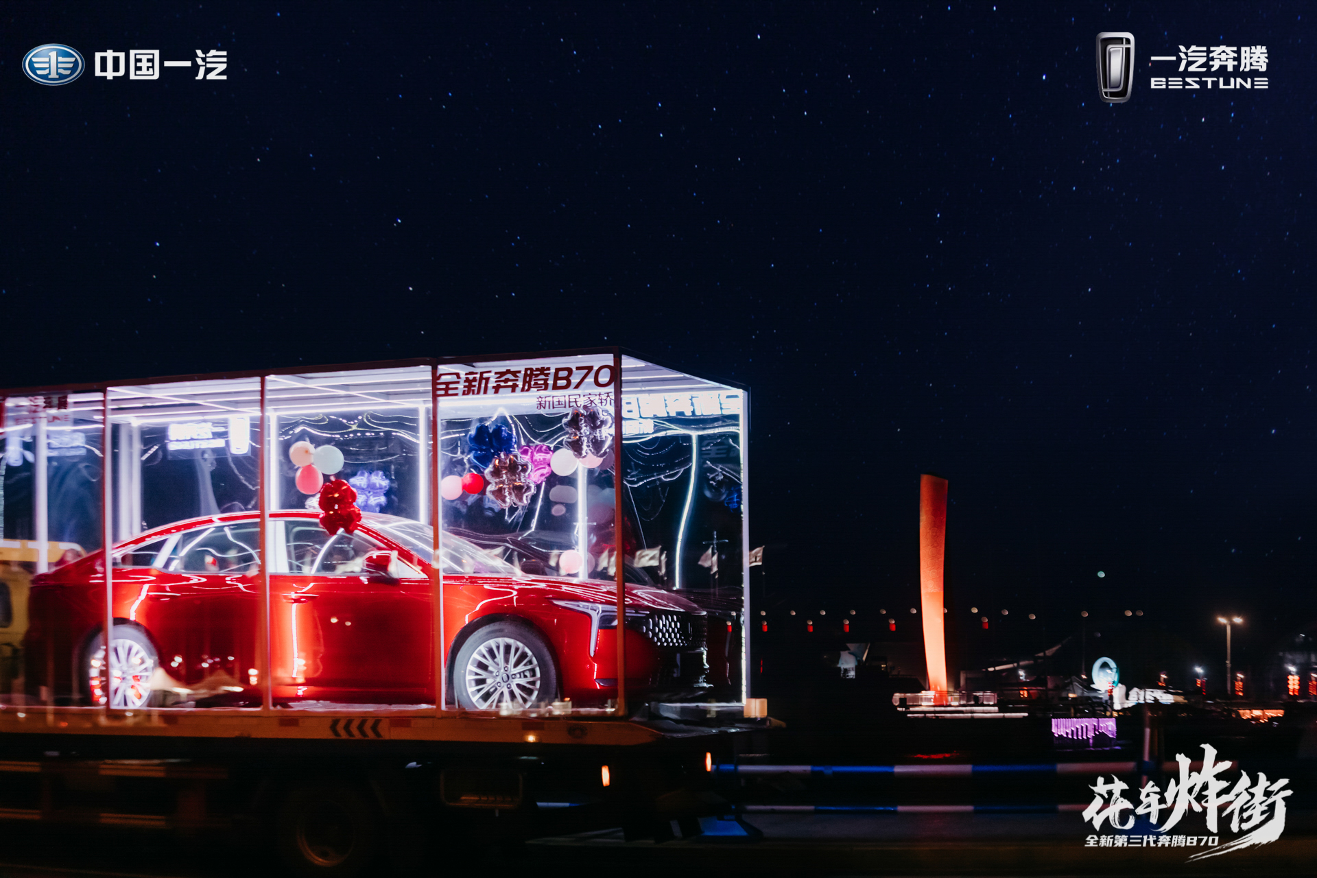 灯火璀璨,夜色阑珊,从城市主干道到地标建筑,从CBD商圈至城市综合体,所到之处,搭载着全新第三代奔腾B70的特装花车惊艳亮相,前卫的造型,时尚的颜值,彰显新国民家轿的年轻化风格,行人纷纷驻足拍照,在街头捕捉奔腾B70的光影魅力,见证国潮奔腾的动人瞬间。